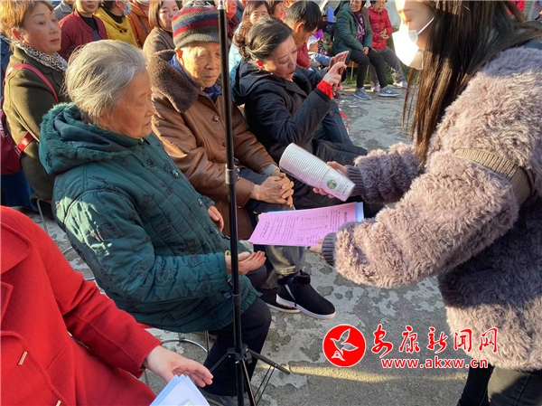 文藝演出間隙,村(社區(qū))干部積極向現(xiàn)場觀眾普及“九率一度”、平安建設(shè)、 “321”基層治理模式、文明城市創(chuàng)建和反電信網(wǎng)絡(luò)詐騙等知識(shí),并發(fā)放宣傳彩頁。