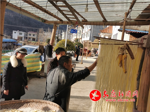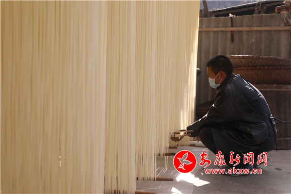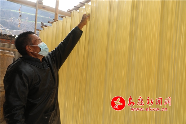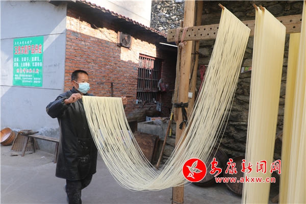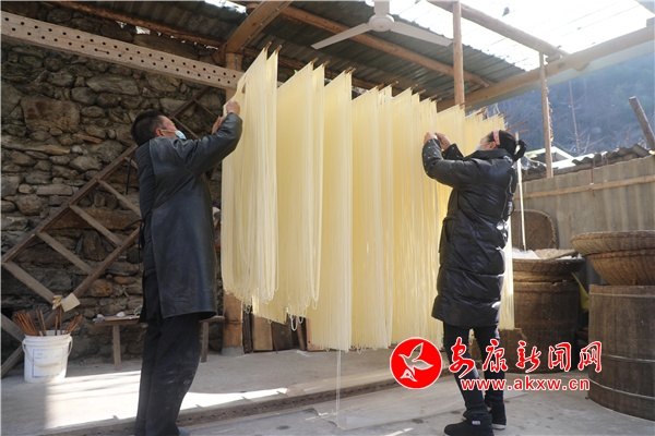臨近春節(jié),家住漢濱區(qū)茨溝鎮(zhèn)東鎮(zhèn)社區(qū)6組村民任玉貴一家因手工鹽掛面的需求量增多,正加緊生產(chǎn)鹽掛面,和面、醒面、盤條、醒面、扯面、晾曬......今年62歲的任玉貴,已有42年的做面經(jīng)驗。從19歲開始,他跟著本村老手藝人王師傅學(xué)習(xí)手工鹽掛面制作,他制作的掛面瓤而筋,口感好,易消化,能增進(jìn)食欲,舒暢開胃,老少皆宜。他加工的鹽掛面不僅銷往城區(qū)周邊,而且遠(yuǎn)銷西安、深圳、廣東等地?恐约呵趧诘碾p手,家里三間兩層的小樓蓋起來了,日子過的有聲有色。目前該手工技藝正在相關(guān)部門的幫扶下正在申請非遺文化傳承人項目。(鄭時根 攝)