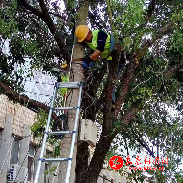 7月11日上午,頂著烈日,現(xiàn)場通訊工作人員正在對中渡路、進(jìn)站路空中搭掛的線纜進(jìn)行梳理整治,采取梳理、捆扎、搭梯、剪線等多種方式,對雜亂無章的線纜進(jìn)行梳理和拆除,進(jìn)一步規(guī)范各類線網(wǎng),消除安全隱患,確?罩芯路布局科學(xué),還城市一個美麗“天際線”。