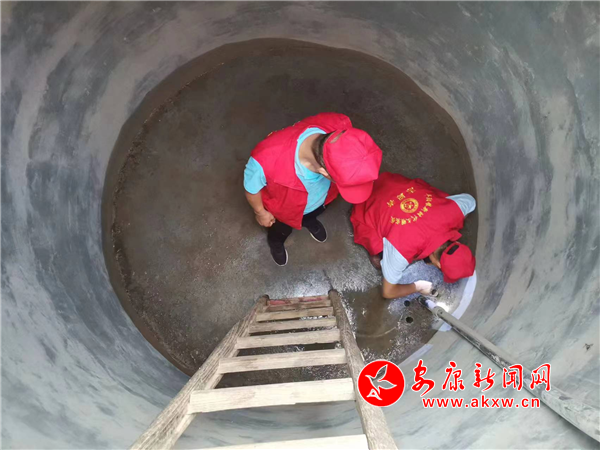 石門村志愿服務隊對人居飲水工程進行全面排查、定期清洗水窖。該村志愿服務分隊長惠才波說,“村里留下來的大部分人都是老弱病殘弱勢人群,近期持續(xù)高溫,防汛抗旱形勢嚴峻,優(yōu)先保障群眾飲水安全,解決群眾急難愁盼問題,是我們工作職責所在,通過我們的行動,讓群眾感受到更多的幸福感,引導群眾參與到文明新風創(chuàng)建中來,讓石門村更美好”。