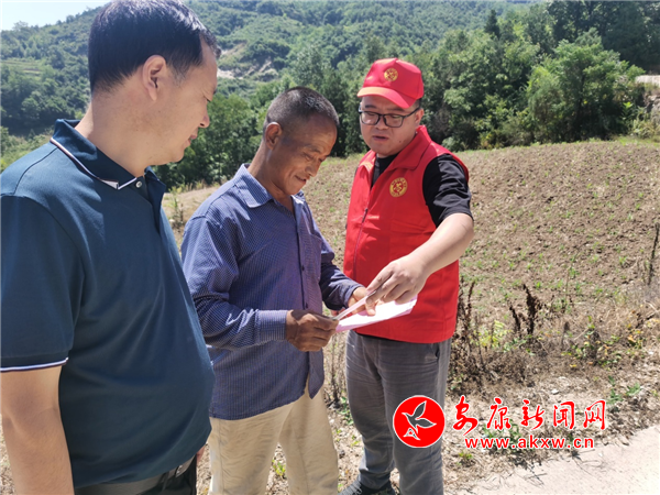 “這么熱的天,快進屋來喝口水。你們送來的農(nóng)業(yè)種植保險政策太及時了,最近天氣干旱,我家今年種的2畝玉米都干壞了,有了保險,能減少我們農(nóng)戶的損失,感謝政府出臺這么好的政策,為農(nóng)戶分憂。”臺竹村八組村民陳治德給上門服務的志愿者說道。
