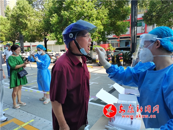 按照全市新冠肺炎疫情防控指揮部的周密部署,8月18日下午,漢濱中心城區(qū)啟動第二次全員核酸檢測工作 。圖為安火路社區(qū)居民在執(zhí)勤民警、醫(yī)務人員、社區(qū)工作者和志愿者的密切配合下,有序開展核酸檢測。(陳榮斌 攝) 4ga安康新聞網