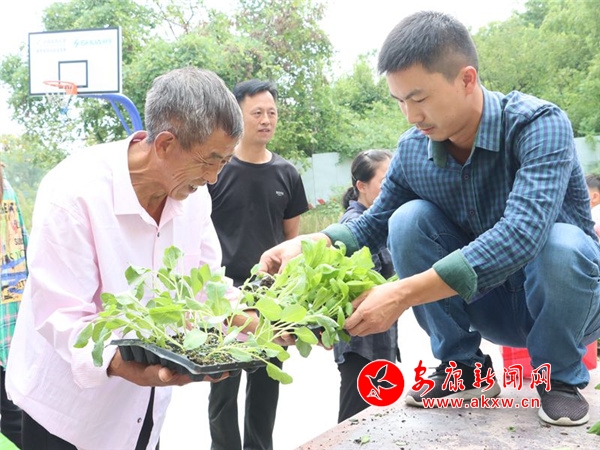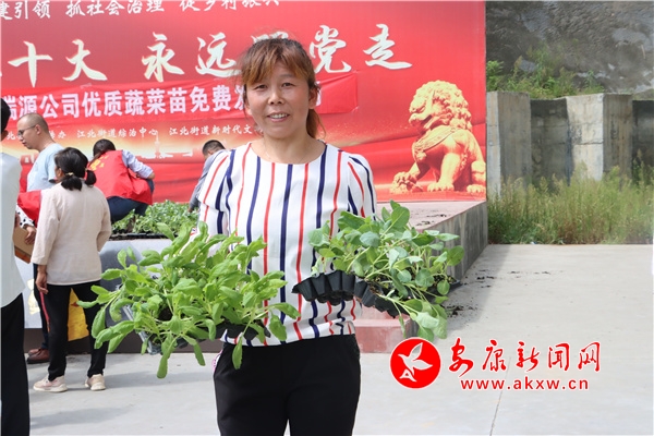 “白菜30株、花菜20株,拿好啊。”社區(qū)支部書記劉興文一邊說著一邊把菜苗遞到吳芳手中。