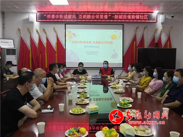 新鋪社區(qū)組織黨員群眾開展“濃情中秋話家風(fēng) 互嵌融合鄰里情”主題活動(dòng),觀看微視頻《中秋節(jié)的來(lái)歷》,品讀中秋詩(shī)詞,互道祝福。