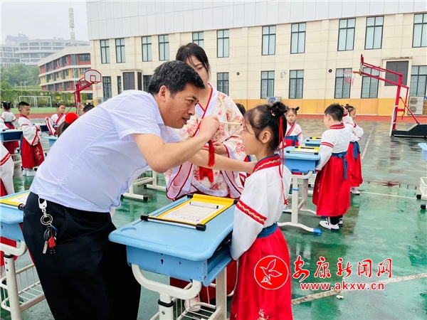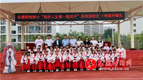 9月16日,安康職業(yè)技術(shù)學院附屬小學舉行“喜迎二十大 強國復興有我”開筆啟智活動。一年級新生身著漢服,通過正衣冠、拜孔子、誦經(jīng)典、點朱啟智、擊鼓鳴志、開筆寫“人”、感恩鞠躬等環(huán)節(jié),領(lǐng)略濃郁的校園文化氛圍和優(yōu)秀傳統(tǒng)文化的魅力,莊重的儀式在學生內(nèi)心種下愛學習、敬師長的種子,助力孩子走好學習第一步。(圖文/甘立)z4k安康新聞網(wǎng)