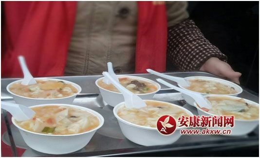 1月24日早晨6點多,安康市慈善協(xié)會佛學(xué)慈善分會的志愿者們,冒著嚴寒將3000多碗臘八粥分別帶到安康城區(qū)潮都薈、三友面館、魯班巷國學(xué)館、陶金豆幼兒園、蒙正學(xué)堂……