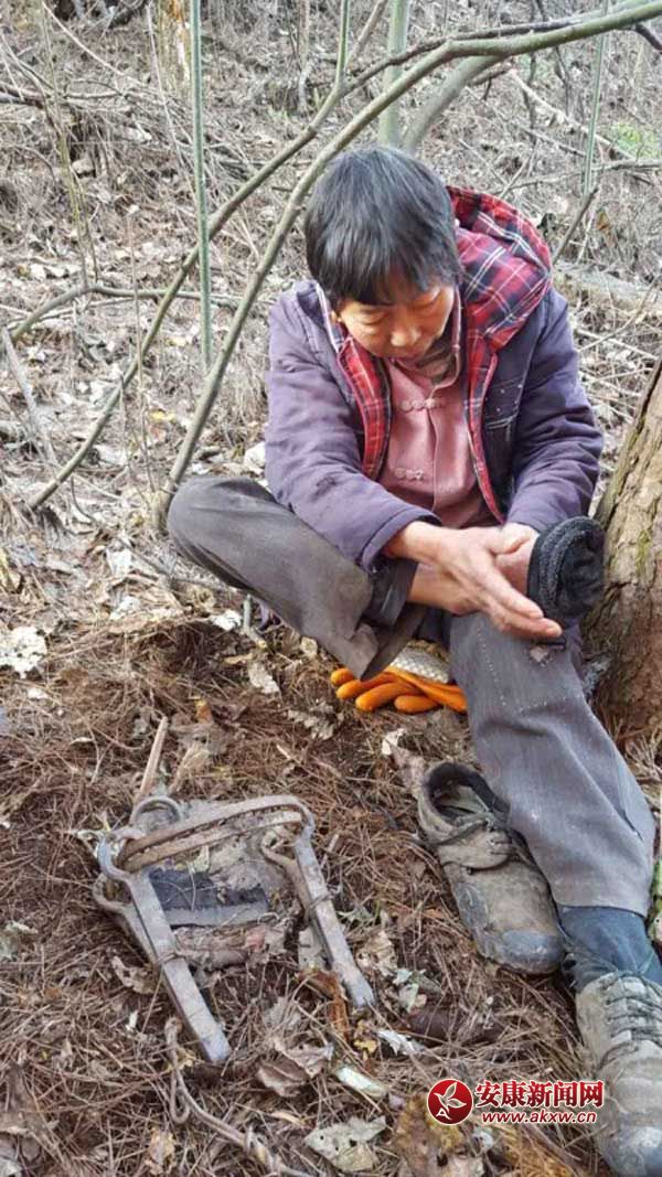 村民肖昌蘭告訴記者,當(dāng)天上午,她和往常一樣早早的上山采摘野生獼猴桃換錢補(bǔ)貼家用。看到眼前這一片叢林中的獼猴桃并不是很多,她就想再往上走一段路,突然感覺右腳被什么東西夾住了。