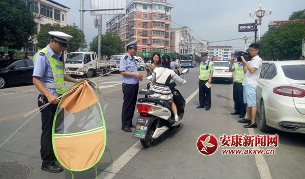 安康新聞網(wǎng)訊(通訊員 廖曉濤 羅傳勇)受夏日酷暑高溫、陰雨天氣影響,我縣部分市民在摩托車、電動車加裝“遮陽傘”上道路行駛的現(xiàn)象日益增多,因此引發(fā)的道路交通事故也在增多。為扎實推進(jìn)暑期道路交通安全隱患集中整治工作,根據(jù)我縣雙創(chuàng)工作實際和漢政辦發(fā)【2016】82號文件要求,2016年7月18日上午,漢陰縣公安局交警大隊抽調(diào)城區(qū)中隊全部警力開展城區(qū)電動車、摩托車非法加裝“遮陽傘”行為的集中整治行動。