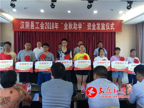 安康新聞網(wǎng)訊(通訊員 方靖 柯艷)8月29日,漢陰縣總工會(huì)舉行2018年“金秋助學(xué)”活動(dòng)助學(xué)金發(fā)放儀式,為該縣今年考上大學(xué)的62名困難職工、農(nóng)民工家庭大學(xué)生發(fā)放了3000元的一次性資助,幫助他們走進(jìn)大學(xué)繼續(xù)深造學(xué)習(xí),同時(shí)倡導(dǎo)各學(xué)子家庭簡(jiǎn)辦升學(xué)禮,不辦升學(xué)宴,大力弘揚(yáng)“誠(chéng)、孝、儉、勤、和”新民風(fēng),鼓勵(lì)受助學(xué)子克服困難,努力學(xué)習(xí),立志成才。縣文明辦、教體局,以及部分鎮(zhèn)和系統(tǒng)工會(huì)領(lǐng)導(dǎo)出席發(fā)放儀式。