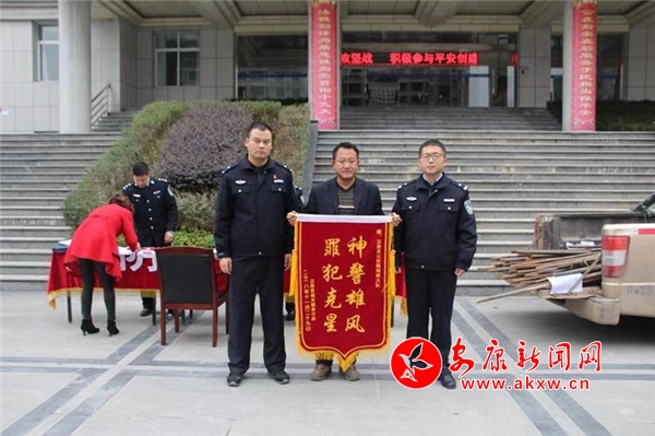 11月29日上午,漢陰公安刑偵大隊(duì)在公安局院內(nèi)舉行涉案贓物返還儀式,將近期偵破案件中追繳的被盜車輛、光纖熔接機(jī)、鋼筋及被騙現(xiàn)金等涉案財(cái)物現(xiàn)場(chǎng)返還給受害群眾。受害群眾對(duì)公安機(jī)關(guān)破案神速、及時(shí)追贓返臟的行為表示真誠(chéng)感謝,并送來了錦旗。本次返還儀式共為群眾返還涉案現(xiàn)金2萬余元,涉案財(cái)物價(jià)值10萬余元,也是漢陰公安今年以來舉行的第6次涉案贓款贓物返還儀式。