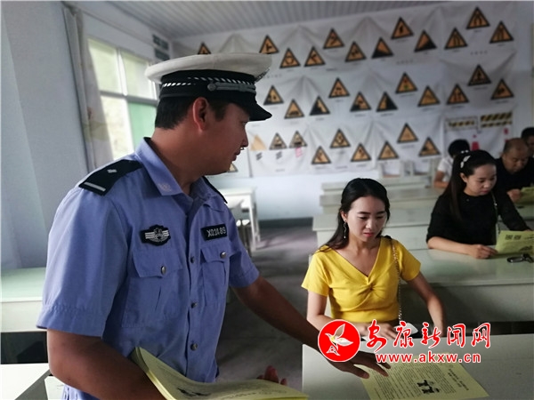 活動中,法宣科民警組織駕校學(xué)員及教練觀看近期部局下發(fā)的農(nóng)村交通事故警示片,該片播放了近期全國農(nóng)村典型事故案例,血淋淋的交通視頻影像讓學(xué)員們感受頗深,警示學(xué)員知道違法駕駛的危害性。民警還向?qū)W員們發(fā)放《致全縣摩托車、電動摩托車騎乘人員的一封信》宣傳資料,深入淺出地向?qū)W員們講解了無證駕駛、酒后駕駛的危害,并通過結(jié)合典型的“酒駕”事故案例,以案釋法,要求學(xué)員牢記“喝酒不開車,開車不喝酒”,騎乘摩托車要佩戴安全頭盔,時刻把交通安全放在首位,自覺遵守交通法律法規(guī),堅決拒絕交通違法行為,切實提高自我保護意識。