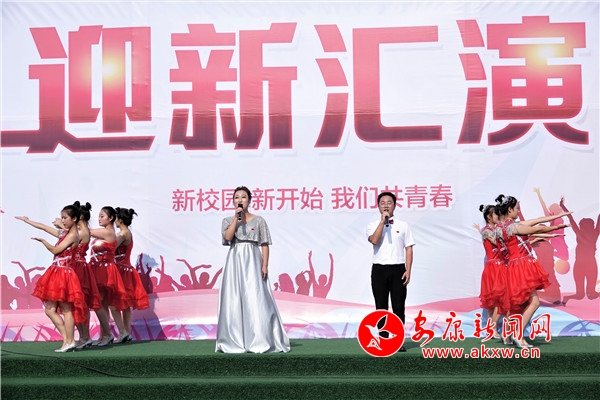 匯演在充滿活力的啦啦操中拉開序幕,首先,學(xué)校黨支部書記作慶祝祖國(guó)70華誕暨迎新致辭。之后同學(xué)們用自編自演的節(jié)目慶祝祖國(guó)生日及歡迎19級(jí)新同學(xué)。