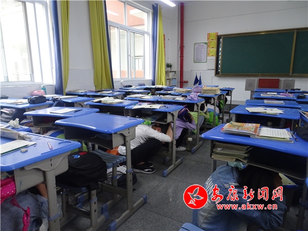當(dāng)廣播發(fā)出“三長一短”地震警報信號時,上課教師立即停止授課,轉(zhuǎn)而成為教室演練負(fù)責(zé)人,指揮學(xué)生抱頭躲在課桌下,蜷曲身體降低重心,并盡可能用書包保護(hù)頭部。一分鐘后,廣播發(fā)出緊急疏散信號。老師告知學(xué)生撤離教室,進(jìn)入緊急疏散演練環(huán)節(jié)。每班靠前后門的兩位學(xué)生立即把門打開,教師迅速將全班學(xué)生分成兩路縱隊,指揮其按照預(yù)定的疏散路線有序撤離。樓道管理人員和跟班教師馬上到達(dá)指定崗位,協(xié)助學(xué)生撤離疏散到操場安全地方。所有師生在操場集合完畢,各班清點人數(shù)向總指揮匯報,學(xué)校負(fù)責(zé)人進(jìn)行活動總結(jié)。