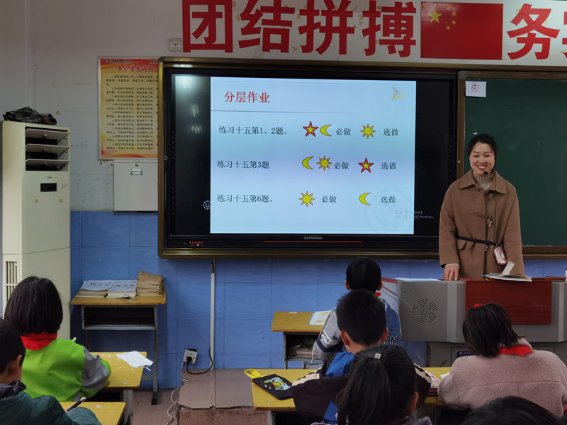 作為“雙減”的重要工作之一,漢陰縣各學校按照《關(guān)于進一步加強學校作業(yè)管理的通知》要求,以加強作業(yè)管理為抓手,健全作業(yè)管理機制,分類明確作業(yè)總量,提高作業(yè)設(shè)計質(zhì)量。按照備課組設(shè)計、學科組審核、年級組統(tǒng)籌、班集體公示的流程,審核公示學生作業(yè),確保各年級作業(yè)數(shù)量和質(zhì)量符合“雙減”要求。各中小學根據(jù)學生實際,實施學生分層、作業(yè)分層和評價分層的“三步三環(huán)”作業(yè)分層管理辦法。按照三個不同層級的學生,科學設(shè)計與其能力范圍相符的基礎(chǔ)鞏固題、能力提升題、思維拓展題,教師依據(jù)學生層次和作業(yè)完成情況綜合考量,進行不同層次的激勵性評價。作業(yè)分層管理,解決了學困生“吃得了”,優(yōu)等生“吃得飽”的問題,讓每個學生在學習過程中獲得成就感,從而變得更自信、更陽光,并以此促進教師的專業(yè)成長和職業(yè)幸福感。