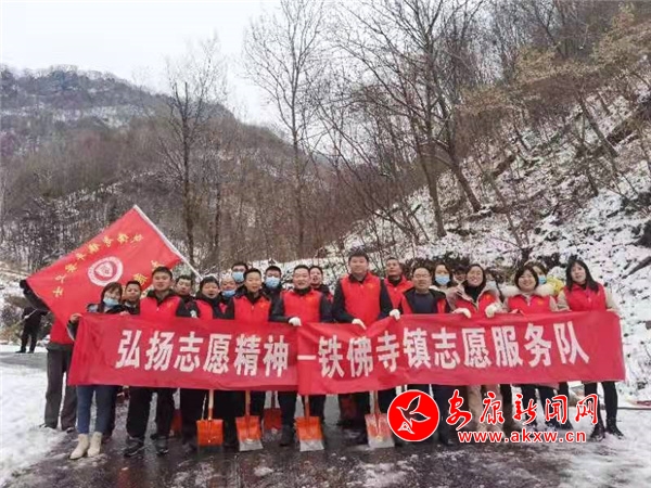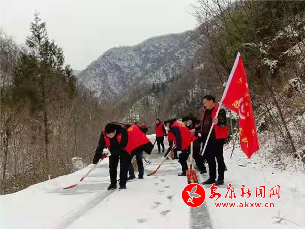 雪后的山間田野,一派銀裝素裹。活動當天,該鎮(zhèn)機關志愿服務隊和2支村級志愿服務隊分別在指定地點集結出發(fā),雖有刺骨寒風呼嘯而過,但絲毫不影響志愿者的昂揚斗志,一個個精神抖擻、熱情高漲。他們身著“紅馬甲”,手持鐵鍬和掃帚,或是揮鍬鏟除凍土冰層,或是清掃路面積雪,并采用拋灑融雪鹽與人工除雪相結合的辦法,加速積雪融化,防止路面打滑。在近三個小時的活動中,130余名志愿者清掃嚴重積雪結冰路段5處,除雪里程達11公里,經(jīng)現(xiàn)場除雪清理后,漢銅路鐵佛段基本恢復通行。
