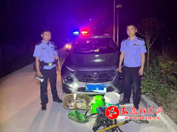 7月31日,漢陰公安雙乳派出所接到護(hù)河信息員反映夜間有人在轄區(qū)三同村段月河內(nèi)電魚(yú)的線索后,該所組織警力進(jìn)行核查布控,23時(shí)許,民警發(fā)現(xiàn)有兩名嫌疑男子正在河道內(nèi)使用電瓶裝置以電魚(yú)方式進(jìn)行非法捕撈。兩名嫌疑人發(fā)現(xiàn)民警后,立即丟棄電瓶裝置、漁獲物等作案工具逃離,經(jīng)過(guò)民警細(xì)致排查,現(xiàn)場(chǎng)查扣嫌疑車(chē)輛一臺(tái),鎖定了犯罪嫌疑人。