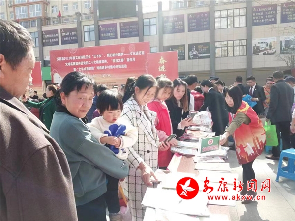 3月3日下午,縣圖書館在澗池鎮(zhèn)集鎮(zhèn)廣場參加了漢陰縣2023年度文化科技衛(wèi)生“三下鄉(xiāng)”、我們的中國夢----文化進(jìn)萬家、文明實(shí)踐宣講團(tuán)黨的二十大精神宣講、“科技之春”宣傳月節(jié)“文化點(diǎn)亮家園”戲曲進(jìn)鄉(xiāng)村集中示范活動?h直多家單位組織參加了此次活動。活動現(xiàn)場氣氛熱烈,節(jié)目內(nèi)容豐富、形式多樣,有歡快的歌舞、詼諧的小品,醫(yī)務(wù)工作者為廣大村民義診,政法部門等單位為群眾送政策?h圖書館的紅色經(jīng)典圖書和科技類、農(nóng)業(yè)類書刊吸引了附近十里八鄉(xiāng)的群眾前來觀看,紛紛挑選符合自己口味的書籍,進(jìn)行現(xiàn)場閱讀。在送書環(huán)節(jié),市民們爭相登記、咨詢、關(guān)注公眾號,他們把書籍拿到手里,如獲至寶,紛紛表示希望縣圖書館多開展這樣的活動,豐富他們的業(yè)余文化生活。