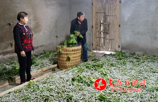 在南窯村家庭養(yǎng)殖合作社,蠶子正趕上四齡期,每天要吃三遍桑葉,早上要上山采摘桑葉,采回來(lái)后要進(jìn)行清洗、消毒,然后再給蠶喂,蠶桑合作社負(fù)責(zé)人王祖忙得不可開交。9x3安康新聞網(wǎng)