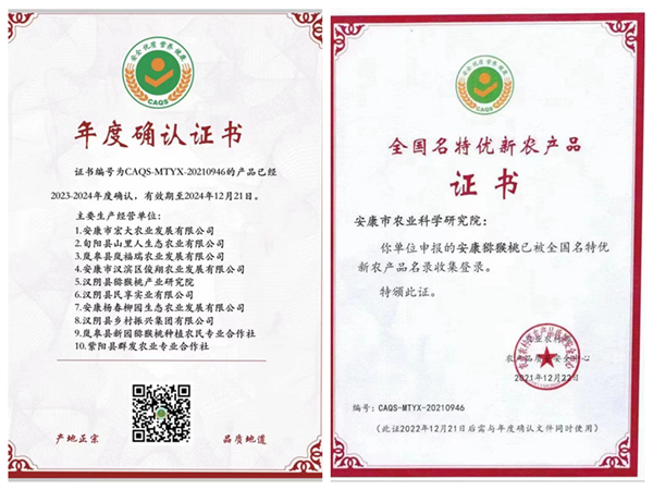 漢陰獼猴桃獲“安康獼猴桃”名特優(yōu)新農產品年度確認