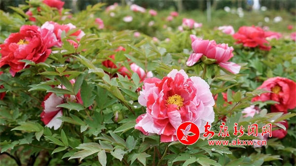 走進(jìn)牡丹園中,一朵朵牡丹花開正艷、絢麗多彩,陣陣花香沁人心脾、令人陶醉。從空中俯瞰,五顏六色的牡丹花次第開放,妖嬈的花朵掩映在綠色的枝葉中,一團(tuán)團(tuán)、一簇簇,開得甚是熱鬧,可謂“百花”齊放、香氣四溢。走近細(xì)看,白牡丹綻開著白色的花瓣,雪白的多層花瓣中心吐露出金蕊,素雅且端莊;紫牡丹花瓣重疊,雍容華貴,絢麗奪目;粉牡丹恰似少女的臉龐,嬌艷欲滴,煞是可愛。