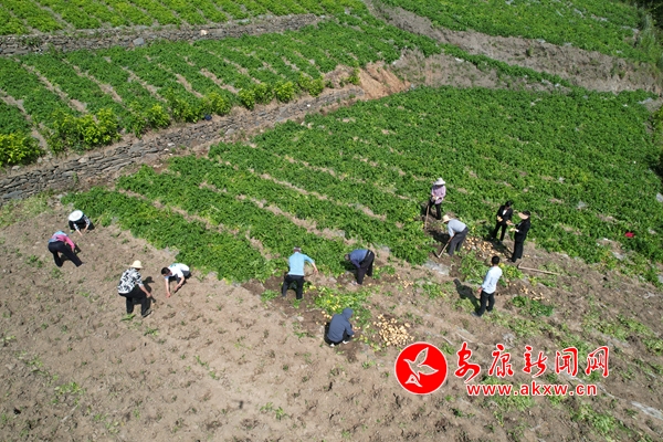 “大家加把勁兒,惠康源公司今天下午要2000斤土豆。”在漢陰縣雙河口鎮(zhèn)黃龍村的土豆種植基地里,駐村第一書記唐建安一邊忙著和村民一起采收土豆,一邊督促進度。十余位村民分工有序,忙而不亂,隨著鋤頭的揮舞,一顆顆外觀飽滿、個頭勻稱的土豆破土而出,分揀、裝袋……田地里每個人的臉上都掛滿了豐收的喜悅。6vf安康新聞網(wǎng)