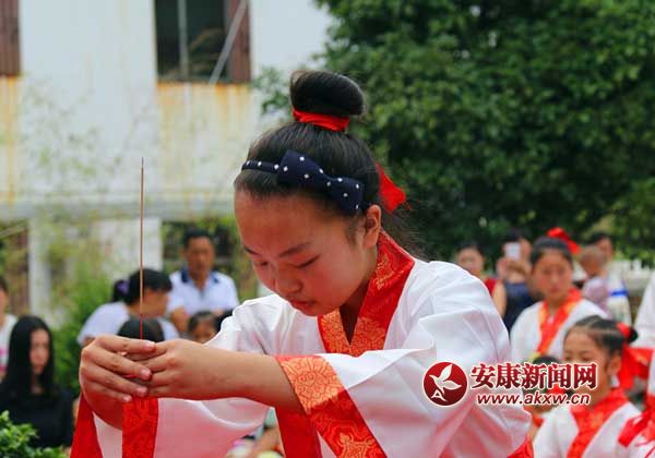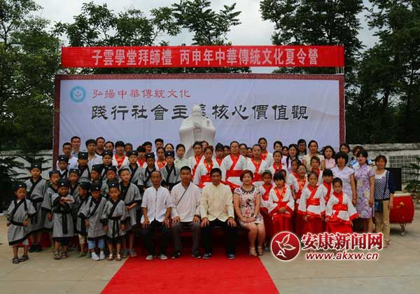 目前,學校先期開啟中華傳統(tǒng)文化夏令營,已招收50名新生,將用四個月的時間實施“伏羲教育”小學段的教育改革探索,傳承國學經(jīng)典,弘揚中華優(yōu)秀傳統(tǒng)文化,搭建“修身齊家,構(gòu)建和諧社會”為宗旨的社會教育與家庭教育相結(jié)合的新型教育模式。在開營儀式上,石泉“伏羲學校”的老師、學生、家長身著民族傳統(tǒng)服裝開展祭孔典禮、拜師儀式、集體誦讀《弟子規(guī)》等形式弘揚國學。