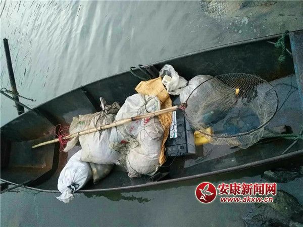 當(dāng)日下午16:00時(shí)許,石泉縣水利局接舉報(bào)稱石泉水庫(kù)大壩下有人非法電魚(yú)消息后,當(dāng)即指派漁政執(zhí)法人員前往查處。經(jīng)現(xiàn)場(chǎng)查看,水庫(kù)大壩下卻有一疑似捕魚(yú)船只在壩下江面游弋,行跡十分可疑。由于大壩下游山體險(xiǎn)峻,執(zhí)法人員只好采取一邊分組盯守,一邊通知相關(guān)人員準(zhǔn)備橡皮伐及攀巖工具。于此同時(shí),城關(guān)派出所民警也聞?dòng)嵆鼍M(jìn)行現(xiàn)場(chǎng)警戒,并共同商議行動(dòng)方案。執(zhí)法人員決定冒險(xiǎn)分兩組分別向非法捕撈嫌疑人藏匿地點(diǎn)靠攏。一組劃橡皮伐由漢江左岸向壩基右岸靠攏,一組由右岸峭壁攀巖而下,由于灘險(xiǎn)流急,崖高壁陡,兩組人員行進(jìn)都十分困難且相當(dāng)危險(xiǎn),稍有不慎就有墜河跌崖的危險(xiǎn)。當(dāng)執(zhí)法人員抵達(dá)右岸壩基時(shí),非法捕撈嫌疑人早已利用熟悉地形和水性好的優(yōu)勢(shì)先將船只灌水沉入江中后,又將漁具藏匿后選擇隱蔽路線逃之夭夭。經(jīng)執(zhí)法人員進(jìn)行近一個(gè)小時(shí)的仔細(xì)搜索,終于在壩基右岸一巖壁下十分隱蔽的水灘里發(fā)現(xiàn)了沉入水下的船只。由于船只藏匿地地勢(shì)險(xiǎn)要,且水下水情不明,執(zhí)法人員幾經(jīng)試探后,才小心謹(jǐn)慎的潛入水下將沉船拖出水面。現(xiàn)場(chǎng)共收繳電瓶等非法捕撈漁具10余件,漁獲物40余斤。