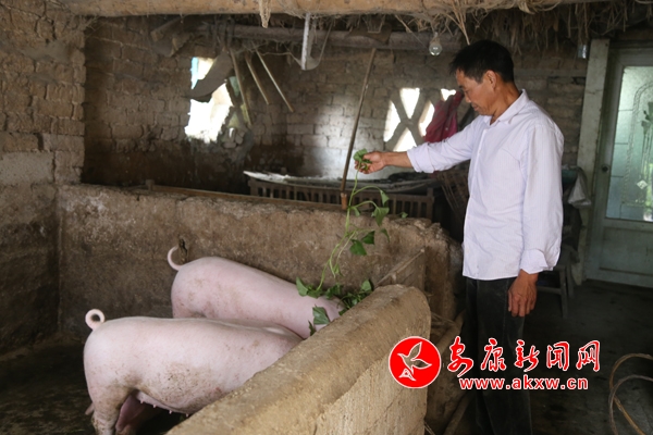稻田靠近公路,要到崔世意的住房還得乘車而上。來到崔世意家的屋場,屋內(nèi)干凈整潔,圈舍里的3頭豬聽見主人回來的聲響,爭搶著跟主人打招呼。