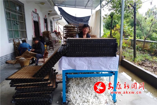 安康新聞網(wǎng)訊(通訊員 沈沙沙 魅力迎豐)“我今年養(yǎng)了20張蠶,在摘繭的時候這臺取繭機(jī)可幫了我們家的大忙。”和蔡明勇交談間,他的妻子已快速取下五六片塑框木質(zhì)方格蔟上的蠶繭,簸箕上堆滿了白花花的蠶繭。Adv安康新聞網(wǎng)