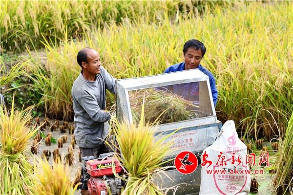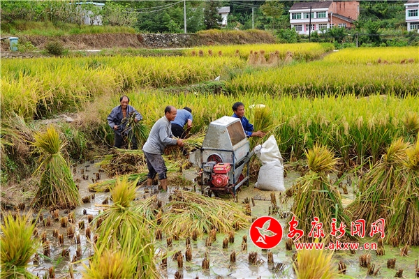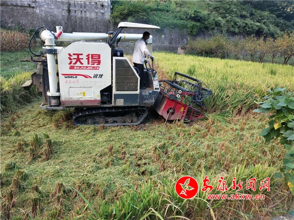 近日,石泉城關(guān)鎮(zhèn)4500畝水稻陸續(xù)進(jìn)入收割期,農(nóng)戶門搶抓晴好天氣,進(jìn)行水稻收割、搬運、貯藏,雷興村、絲銀壩村、黃荊壩社區(qū)等村(社區(qū))也首次采用機器代替手動收割,確保確保秋糧顆粒歸倉。(董長松/攝)rdf安康新聞網(wǎng)