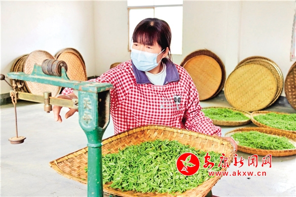 熨斗鎮(zhèn)先聯(lián)村依托1300多畝茶園,還成立了商貿(mào)公司,堅(jiān)持以企業(yè)為龍頭,帶動(dòng)廣大農(nóng)戶形成了從茶樹種植、茶葉加工、茶葉銷售到茶園觀光旅游為一體的產(chǎn)業(yè)鏈。“我們依托這個(gè)茶園基地,通過茶葉加工技術(shù)提升、品牌打造、電商銷售等渠道把靈雀山茶葉不斷推向市場,再依托商貿(mào)企業(yè)把產(chǎn)業(yè)融合發(fā)展聯(lián)動(dòng)帶起來,讓群眾持續(xù)穩(wěn)定增收!”熨斗鎮(zhèn)先聯(lián)村駐村第一書記邱衛(wèi)東說。