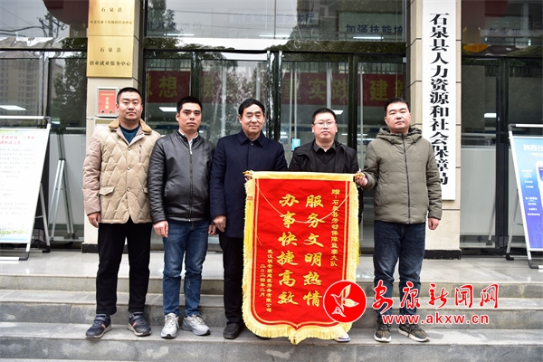本網(wǎng)訊(通訊員 胡俊)2月18日,春節(jié)后上班第一天,武漢某勞務(wù)公司負(fù)責(zé)人及工人代表專(zhuān)程趕到石泉縣,將一面印有“服務(wù)文明熱情 辦事快捷高效”的錦旗送到該縣人社局勞動(dòng)保障監(jiān)察大隊(duì),對(duì)工作人員為民維權(quán)、積極保障勞動(dòng)者權(quán)益的辛勤付出表示由衷的感謝和敬意。