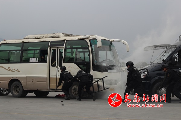 安康新聞網(wǎng)訊 (通訊員 馮先釗)12月27日,石泉縣新汽車站響起來急促的警笛聲,一場以公交車反劫持為主題的防暴反恐實(shí)戰(zhàn)演練拉開了序幕。下午2點(diǎn)40分,多名“歹徒……