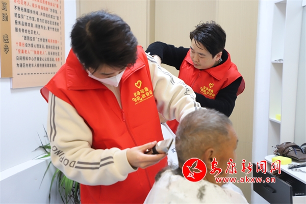 通訊員 王博“ 阿姨,您看下,想剪個(gè)啥樣的發(fā)型?”“ 叔叔,剪好了,再去那邊沖洗一下……”“大家莫急,排好隊(duì),都能剪到的……”在……
