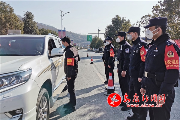 紫陽縣公安局蒿坪派出所組織專門警力,全天候在“兩卡點”對外來車輛、人員進行登記、消毒、檢查、勸返和應對疫情防控知識宣傳。