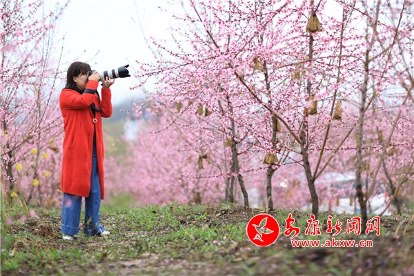 游客們穿梭在桃林間賞花拍照,攝影愛好者們拿起手中的相機(jī),以專業(yè)的攝影技巧、獨(dú)特的視角和充滿靈感的鏡頭,定格桃園的美景。